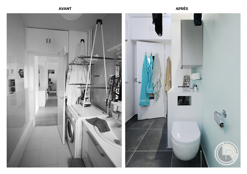 Telle est la problématique de ce projet : Comment créer une salle d’eau supplémentaire dans une surface de 8m² total ?