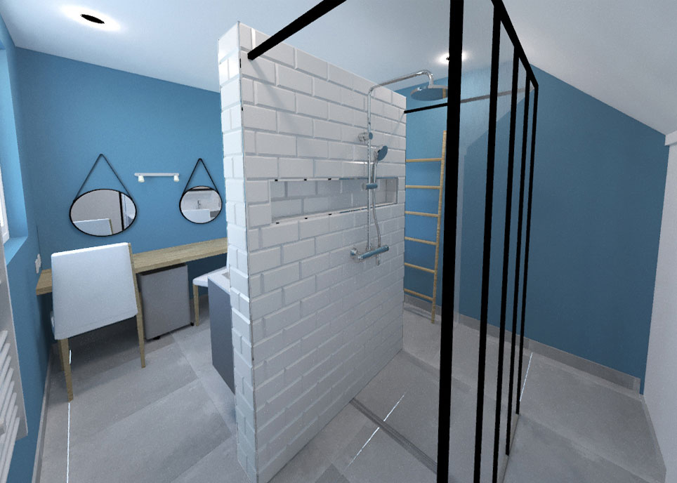 La demande était de créer une salle d’eau supplémentaire dans la maison, destinée aux enfants.